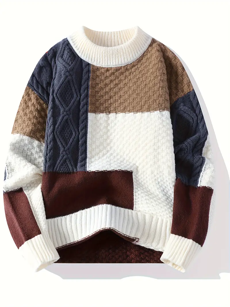 Experience warmth, texture, and style in one piece with this Premium Multi-Texture Patchwork Knit Sweater. Designed using multiple knitted patterns—cable knit, waffle knit, honeycomb knit, and smooth weave—this sweater offers a richly detailed look that stands out from ordinary winter wear.