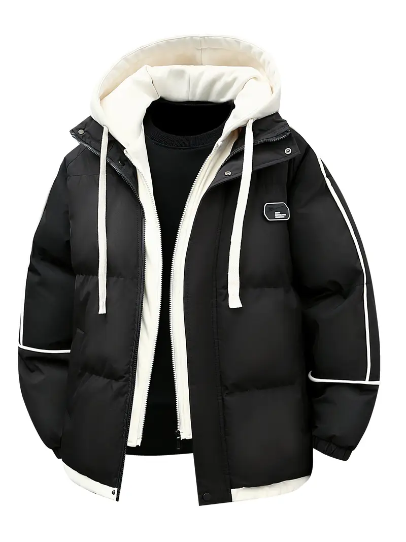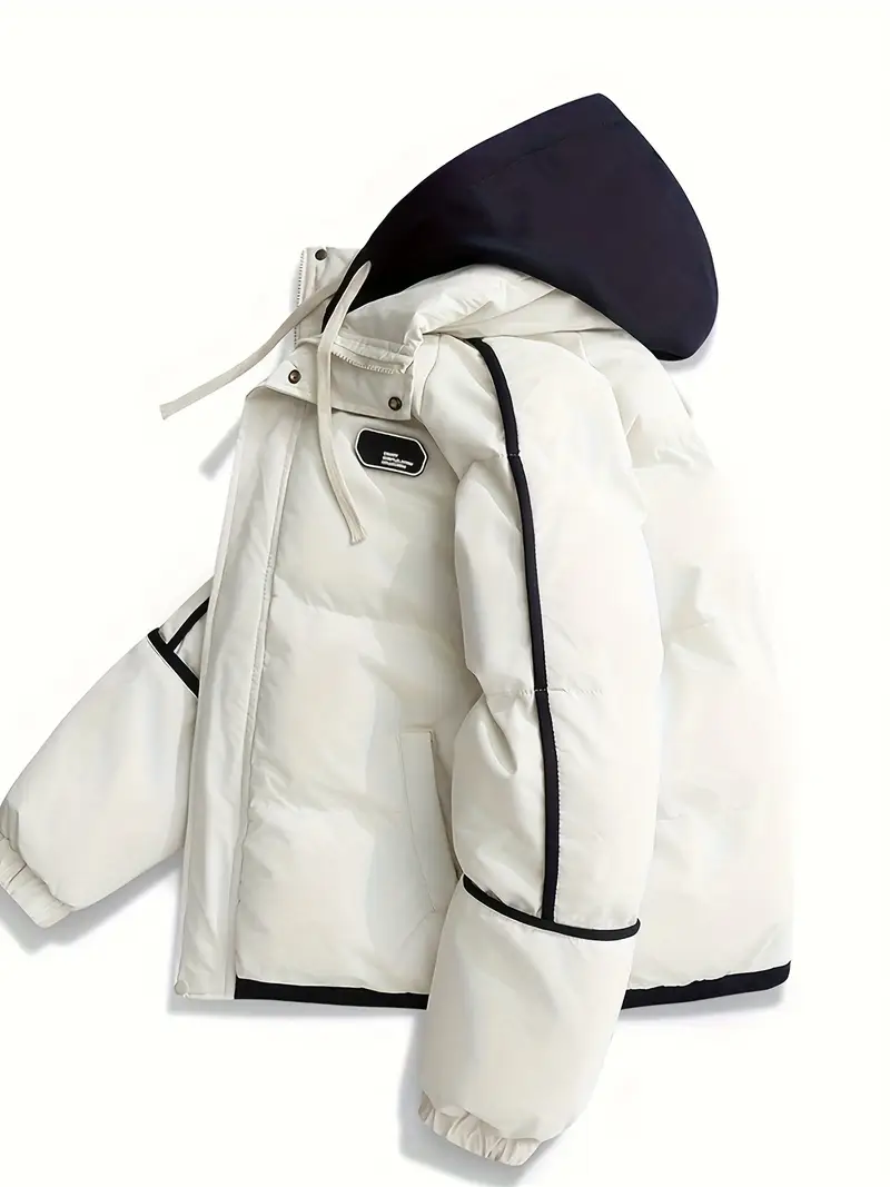 puffer outerwear, thermal padded coat, dual-layer puffer, hoodie puffer jacket, snow-ready jacket, lightweight padded outerwear, cozy winter coat, everyday warm jacket, insulated zip-up coat, plush lining outerwear